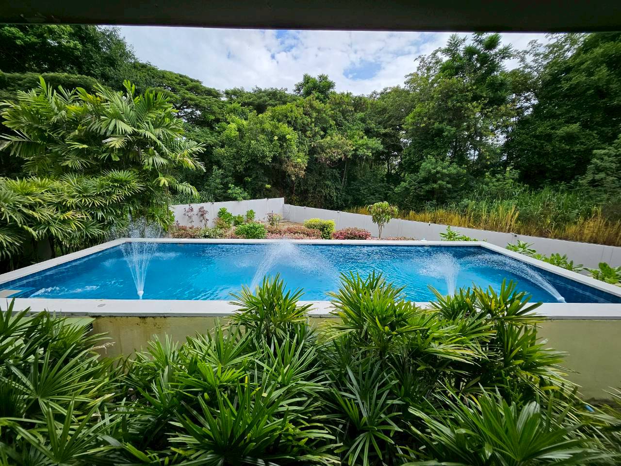 Swimming pool with fountains